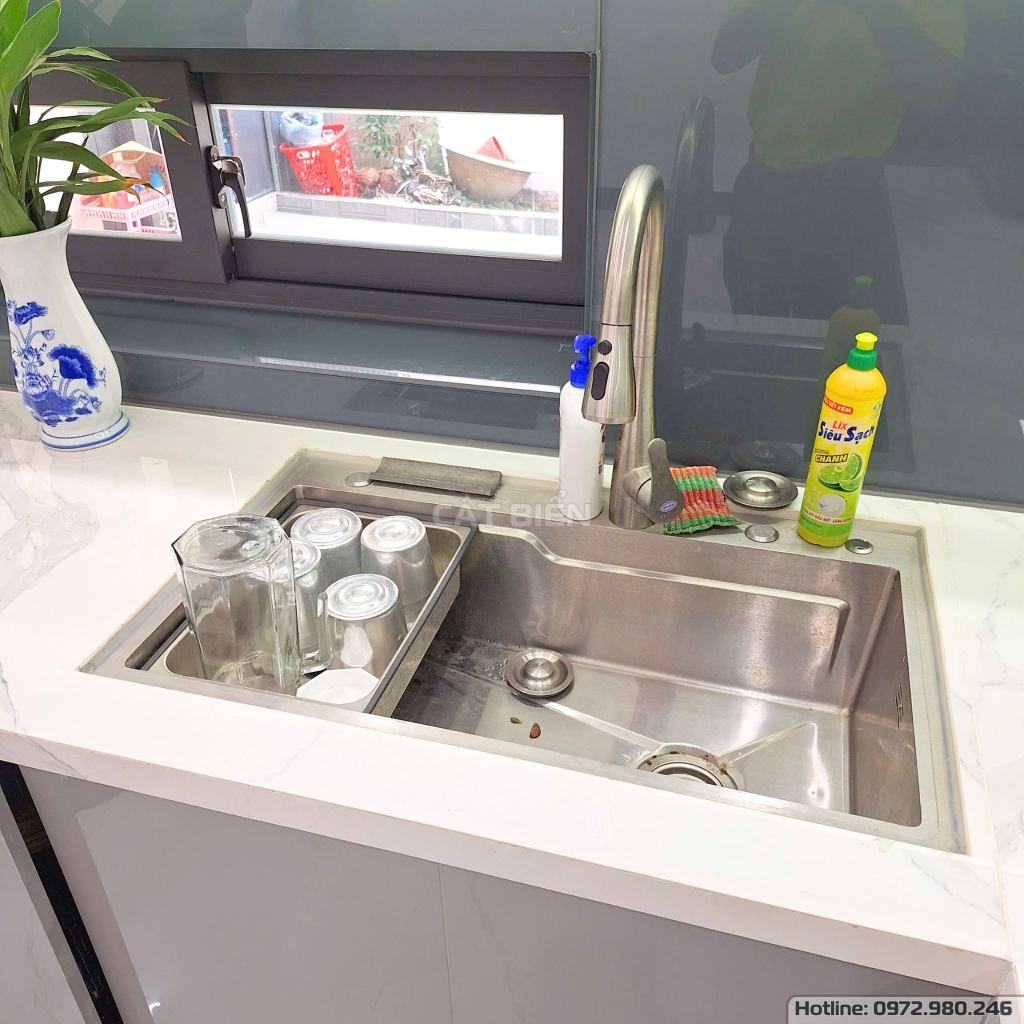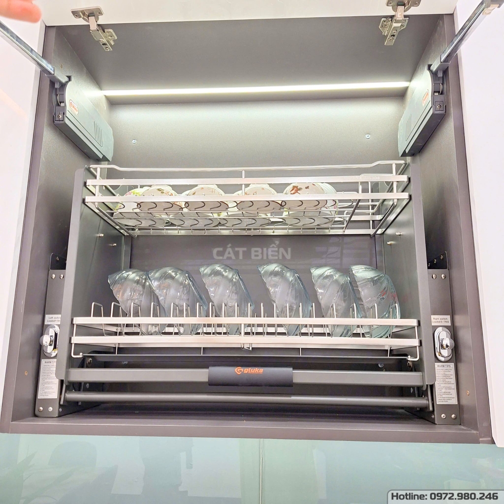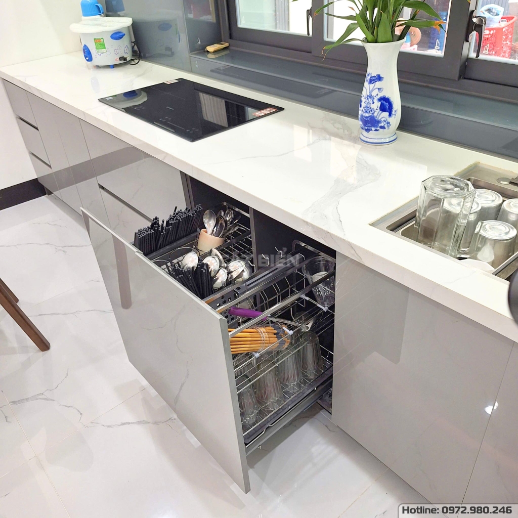 Công trình nội thất phòng bếp tại Giồng Riềng – Kiên Giang được thi công với rất nhiều hạng mục và sản phẩm khác nhau như tủ bếp, giá nâng hạ có trợ lực, giá chai lọ giao thớt, thùng gạo, chậu rửa, bếp âm, máy hút mùi, phụ kiện bếp thông minh,… tất cả đều được Cát Biển trực tiếp thiết kế, sản xuất và thi công bằng chất liệu gỗ công nghiệp An Cường MDF chống ẩm mốc. Từng chi tiết đều được đội ngũ kĩ thuật chăm chút tỉ mỉ với mong muốn đem đến sản phẩm chất lượng nhất đến quý khách hàng!