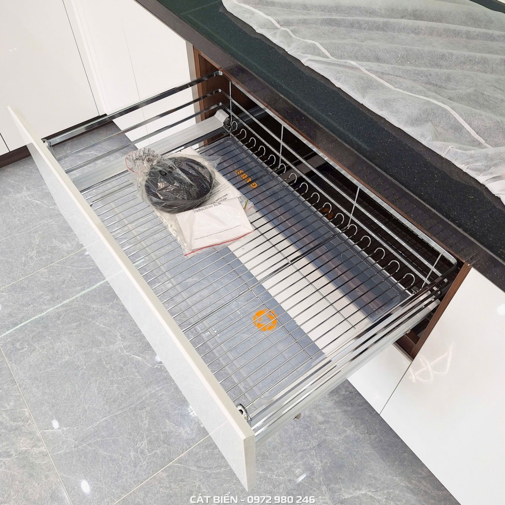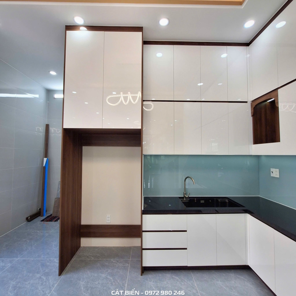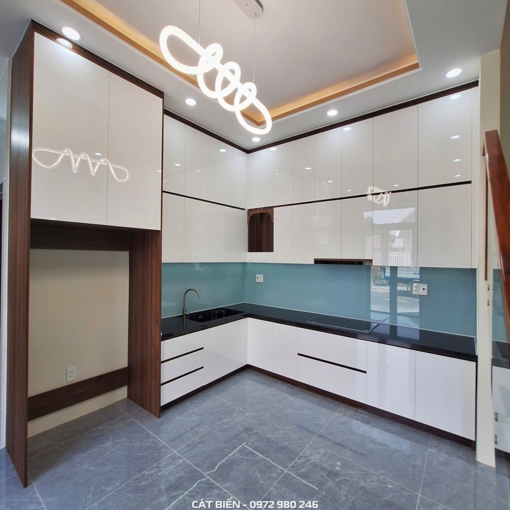 Công trình nội thất phòng bếp tại KDC Nam An Hòa - Rạch Giá – Kiên Giang được thi công với rất nhiều hạng mục và sản phẩm khác nhau như tủ bếp, giá để bát đĩa xoong nồi dao thớt chai lọ thông minh,… tất cả đều được Cát Biển trực tiếp thiết kế, sản xuất và thi công bằng chất liệu gỗ công nghiệp An Cường MDF chống ẩm mốc. Từng chi tiết đều được đội ngũ kĩ thuật chăm chút tỉ mỉ với mong muốn đem đến sản phẩm chất lượng nhất đến quý khách hàng!