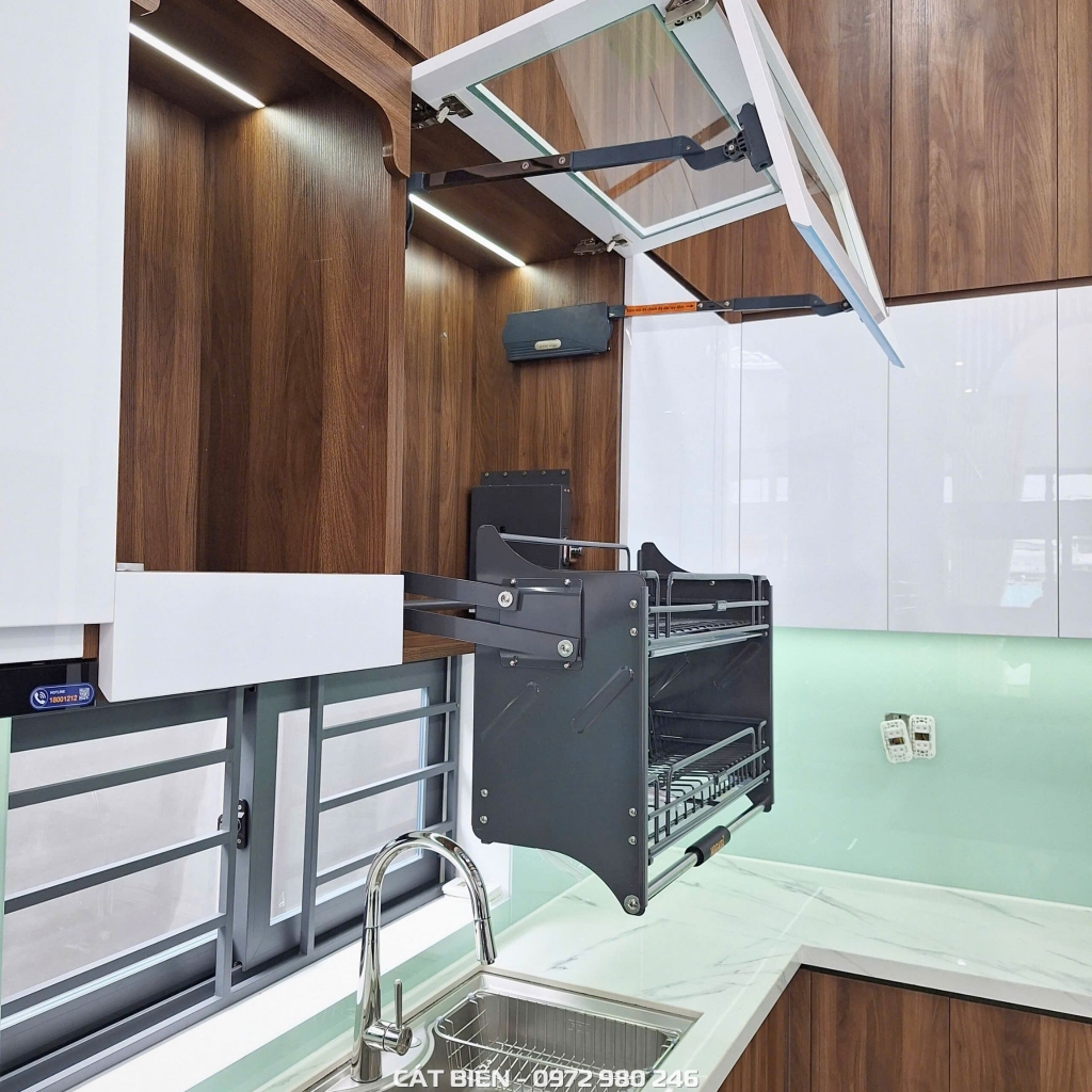 Công trình nội thất phòng bếp tại Hòn Đất - Kiên Giang được thi công với rất nhiều hạng mục và sản phẩm khác nhau như tủ bếp, giá để xoong nồi dao kéo bát đĩa chai lọ có trợ lực, thiết bị bếp, phụ kiện thùng gạo thông minh,… tất cả đều được Cát Biển trực tiếp thiết kế, sản xuất và thi công bằng chất liệu gỗ công nghiệp An Cường MDF chống ẩm mốc. Từng chi tiết đều được đội ngũ kĩ thuật chăm chút tỉ mỉ với mong muốn đem đến sản phẩm chất lượng nhất đến quý khách hàng!