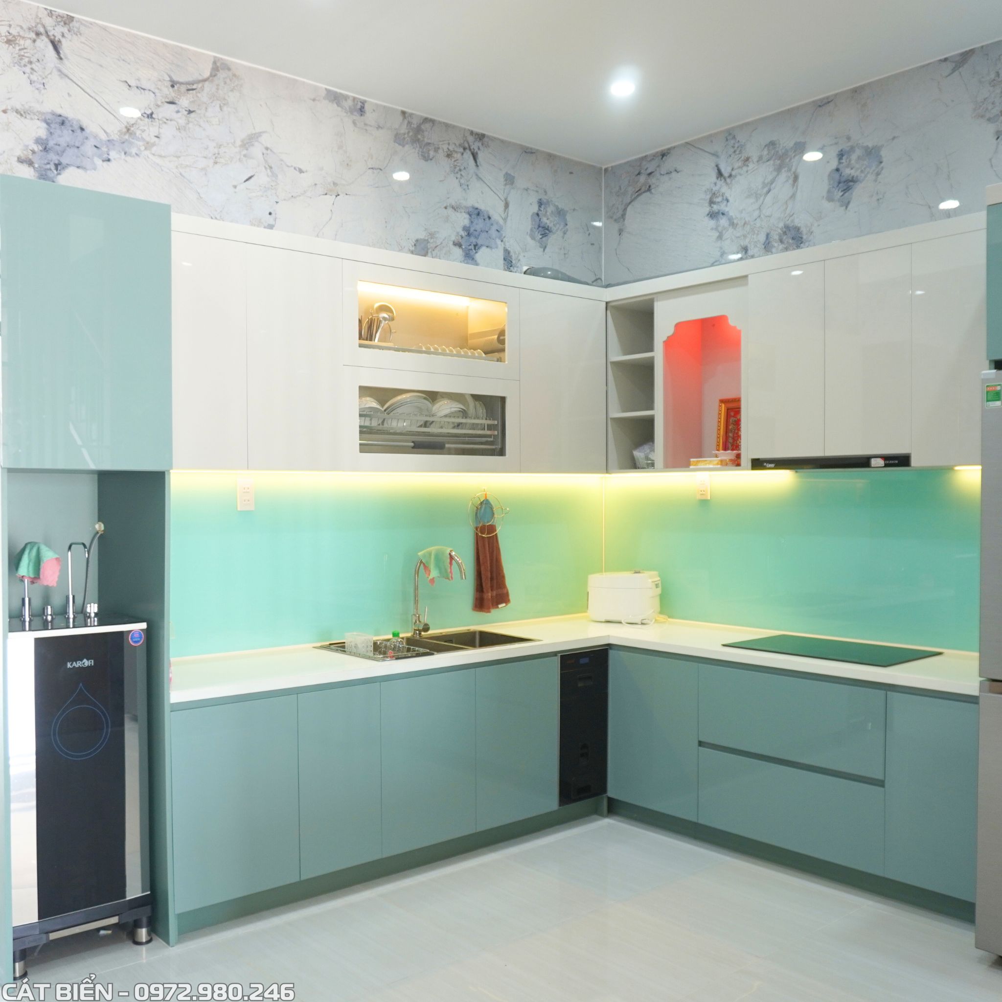 Công trình nội thất phòng bếp tại KDT Tây Bắc - Rạch Giá – Kiên Giang được thi công với rất nhiều hạng mục và sản phẩm khác nhau như tủ bếp, giá dao thớt thông minh, giá bát đĩa nâng hạ thông minh có trợ lực,… tất cả đều được Cát Biển trực tiếp thiết kế, sản xuất và thi công bằng chất liệu gỗ công nghiệp An Cường MDF chống ẩm mốc. Từng chi tiết đều được đội ngũ kĩ thuật chăm chút tỉ mỉ với mong muốn đem đến sản phẩm chất lượng nhất đến quý khách hàng!