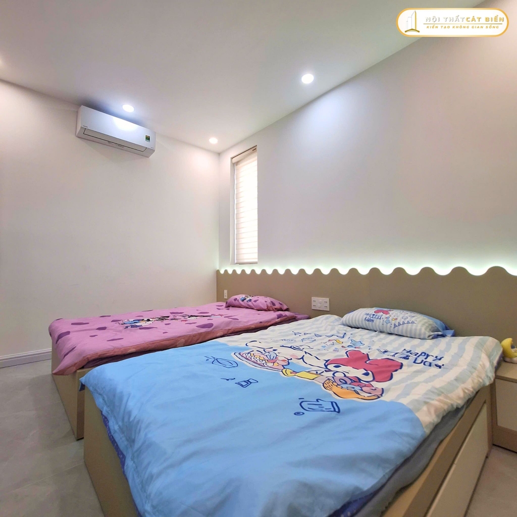 Công trình nội thất phòng ngủ tại KDT Phú Cường - Rạch Giá - Kiên Giang được thi công với rất nhiều hạng mục và sản phẩm như giường ngủ, tủ quần áo, tủ đầu giường, kệ tivi, bàn học và làm việc… tất cả đều được Cát Biển trực tiếp thiết kế, sản xuất và thi công bằng chất liệu gỗ công nghiệp An Cường MDF lõi xanh chống ẩm mốc. Từng chi tiết đều được đội ngũ kĩ thuật chăm chút tỉ mỉ với mong muốn đem đến sản phẩm chất lượng nhất đến quý khách hàng!