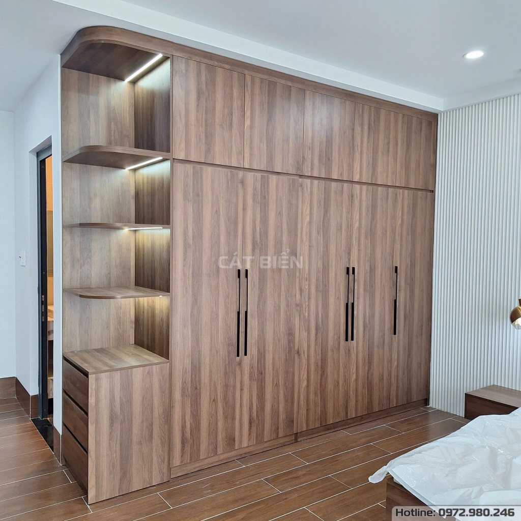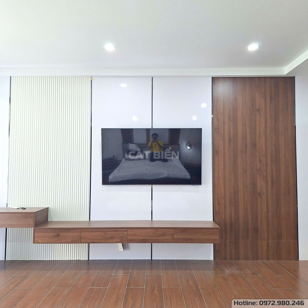 Công trình nội thất phòng ngủ tại KDT Phú Cường - Rạch Giá - Kiên Giang được thi công với rất nhiều hạng mục và sản phẩm như giường ngủ, tủ đầu giường, tủ quần áo, bàn trang điểm, kệ tivi, vách trang trí MDF, vách lam sóng… tất cả đều được Cát Biển trực tiếp thiết kế, sản xuất và thi công bằng chất liệu gỗ công nghiệp An Cường MDF lõi xanh chống ẩm mốc. Từng chi tiết đều được đội ngũ kĩ thuật chăm chút tỉ mỉ với mong muốn đem đến sản phẩm chất lượng nhất đến quý khách hàng!
