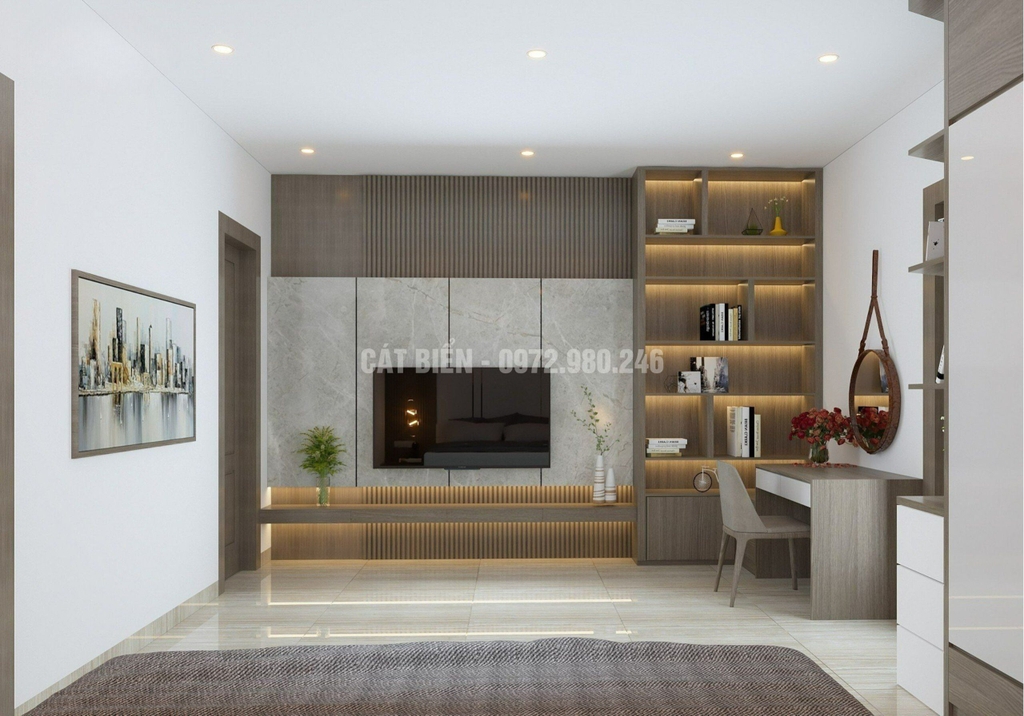 Công trình nội thất phòng ngủ tại khu đô thị Tây Bắc Rạch Giá – Kiên Giang được thi công với rất nhiều hạng mục và sản phẩm khác nhau như, vách, giường, tủ quần áo, tab đầu giường, bàn học, bàn làm việc, kệ tivi… tất cả đều được Cát Biển trực tiếp thiết kế, sản xuất và thi công bằng chất liệu gỗ công nghiệp An Cường MDF chống ẩm mốc. Từng chi tiết đều được đội ngũ kĩ thuật chăm chút tỉ mỉ với mong muốn đem đến sản phẩm chất lượng nhất đến quý khách hàng!