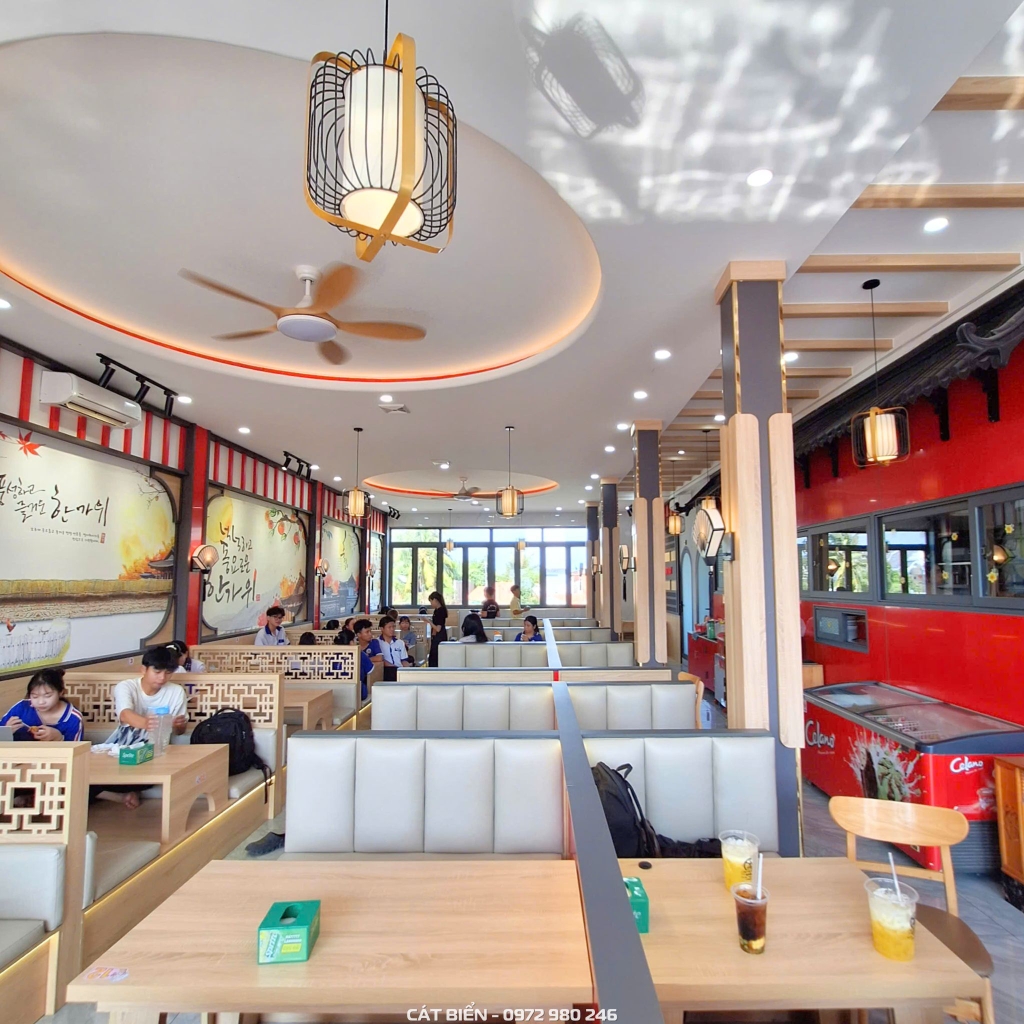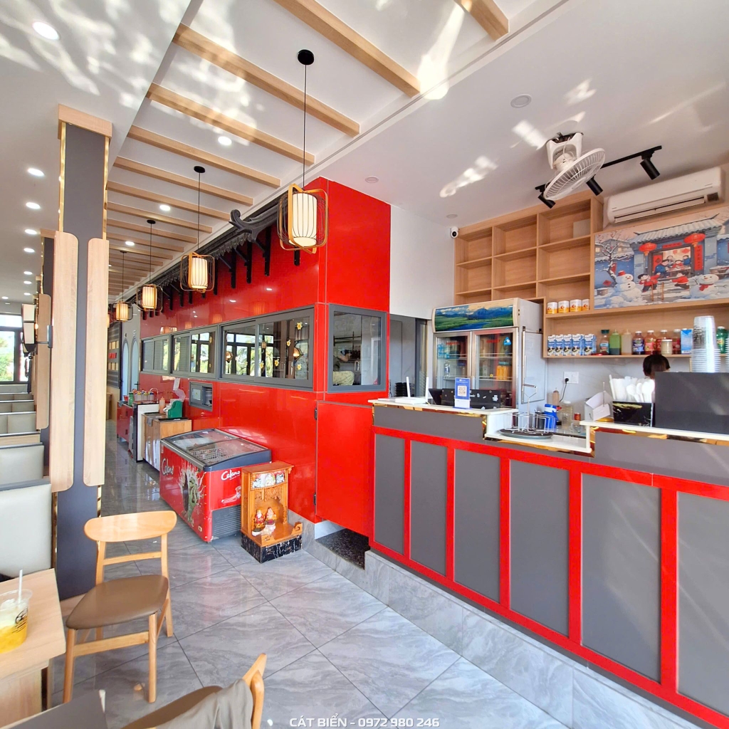 Công ty Nội Thất Cát Biển vừa hoàn thiện công trình thiết kế và thi công nội thất quán Mì Cay Mocha tại Hòn Đất, mang đến một không gian ẩm thực trẻ trung, hiện đại và phù hợp với mô hình kinh doanh của quán. Ngay từ những bước đầu triển khai, đội ngũ Cát Biển đã cùng khách hàng trao đổi, thống nhất ý tưởng để tạo nên một không gian vừa nổi bật, vừa thân thiện và thoải mái cho thực khách khi đến trải nghiệm.